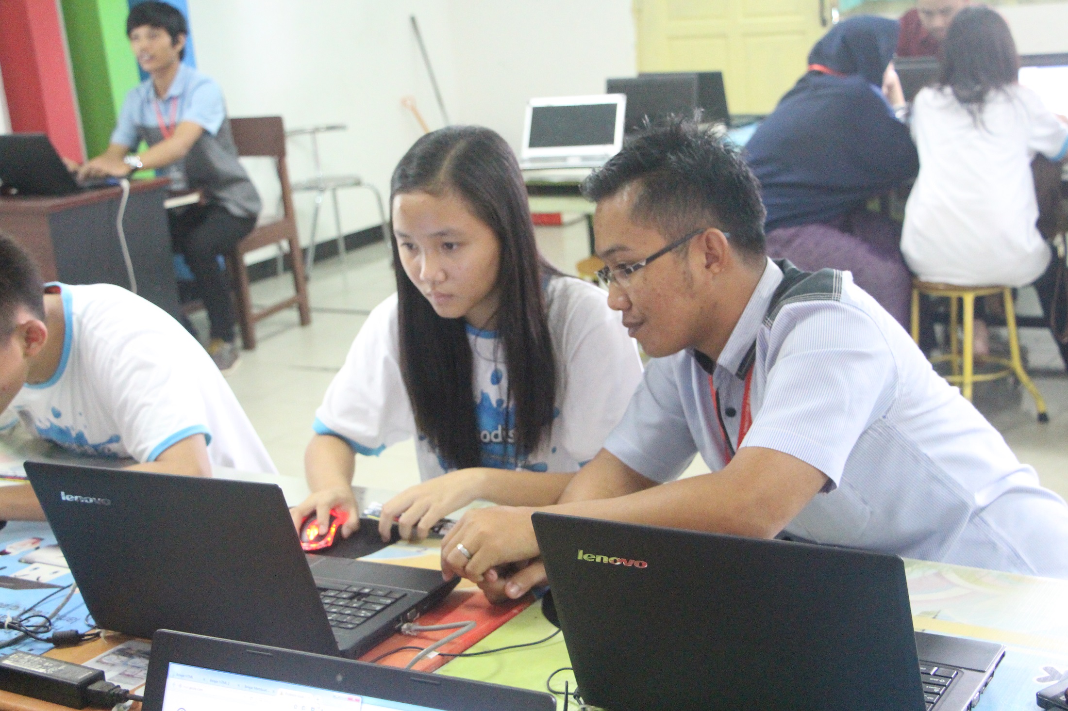 - Anggota Cyborg IT Center membimbing peserta pelatihan